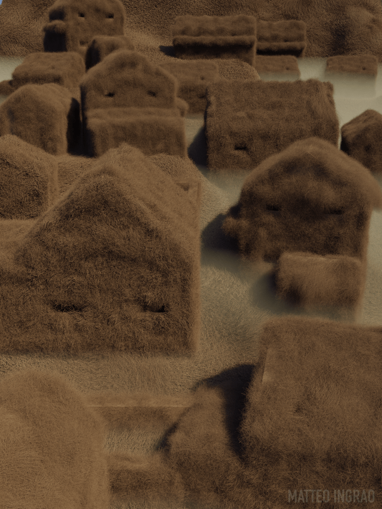 Hair is a temporal indicator. I created this hairy village, inspired by Shengsi Islands, where nature took over an abandonned fisherman village. As nature thrives again when left untouched, our growing hair points out we are flourishing, growing, and evolving. There is something fascinating in watching our hair grow on our naked bodies, creating unique patterns as ornaments on naked walls. Be proud of your hirsute ornament!